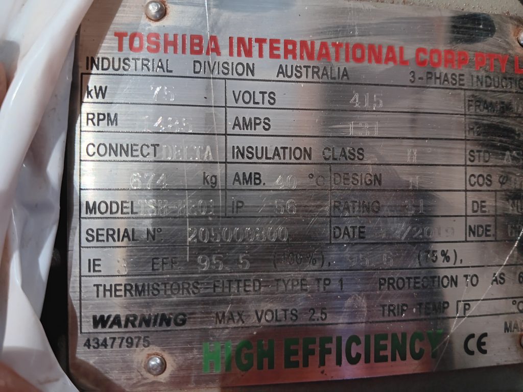 TOSHIBA 75kw ELECTRIC MOTOR FOR SALE